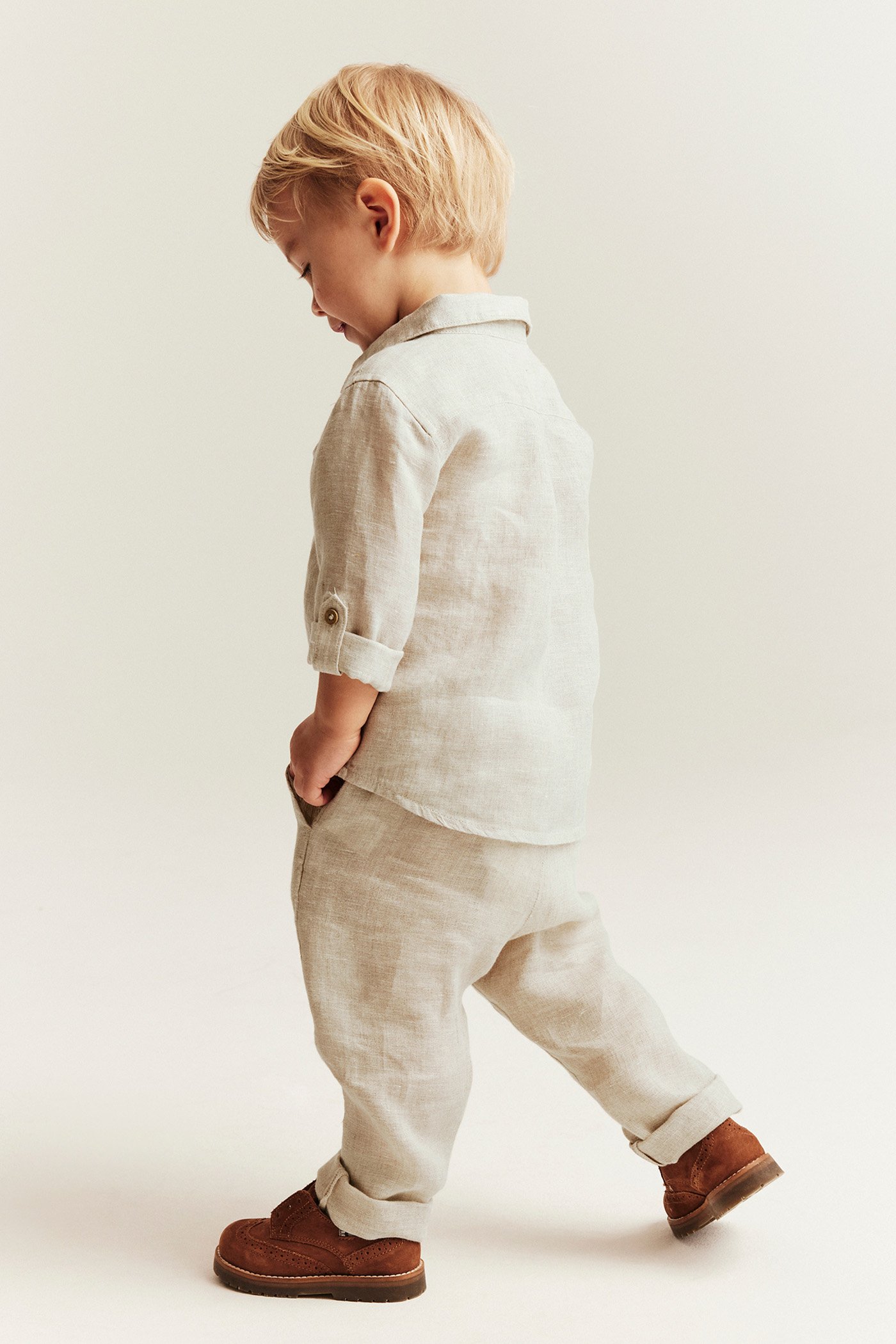 Leinenkleidung bleibt luftig und leicht. Das hilft Kindern, sich wohlzufühlen, wenn die Temperaturen im Sommer steigen. Viele Eltern wählen Leinenkleidung und schlichte Leinenoutfits, weil das Material gut atmet und sanft auf der Haut liegt. Leinen wird mit jedem Tragen weicher, und die natürlichen Falten verleihen jedem Stück einen charmanten, getragenen Look.