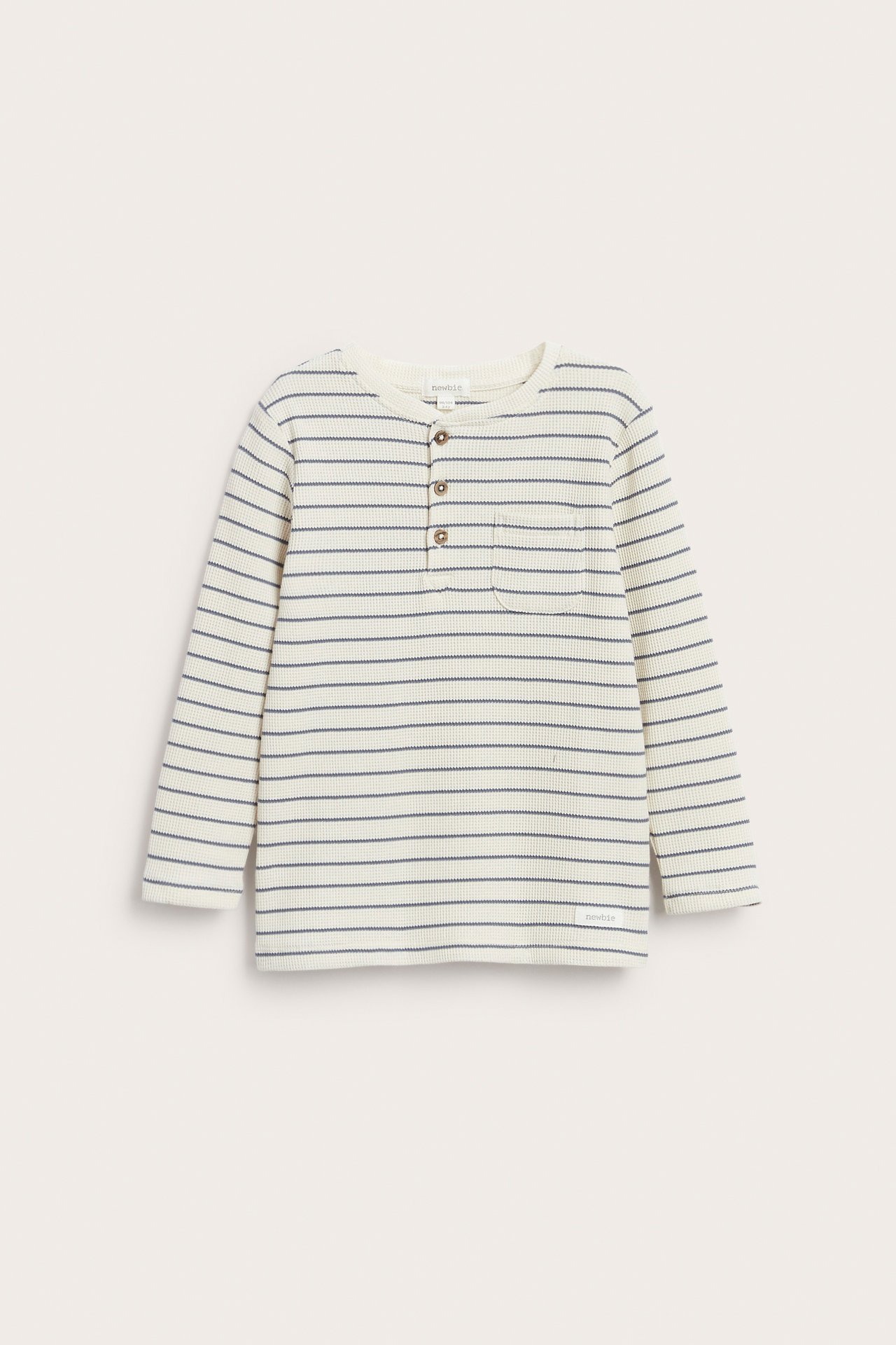 Gestreiftes Langarmshirt von Newbie aus weicher Biobaumwolle. Mit Waffelstruktur, praktischen Knöpfen vorne und einer Brusttasche. Mit Rippbündchen an Ausschnitt, Ärmeln und Saum.